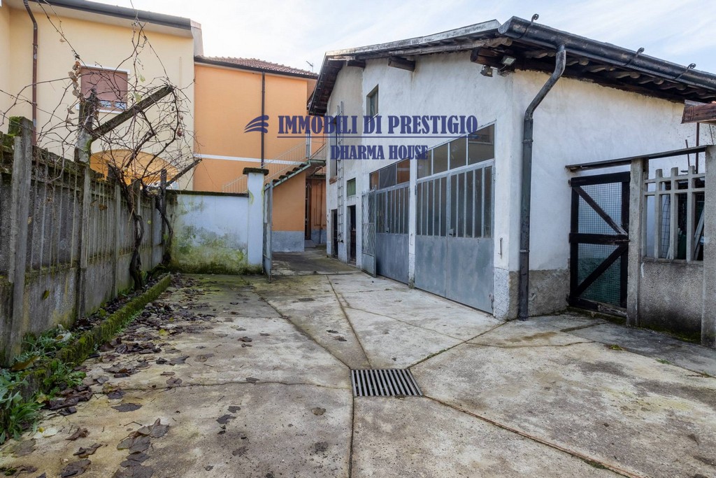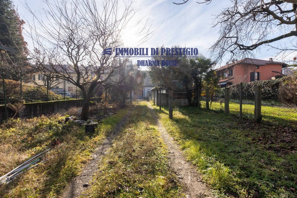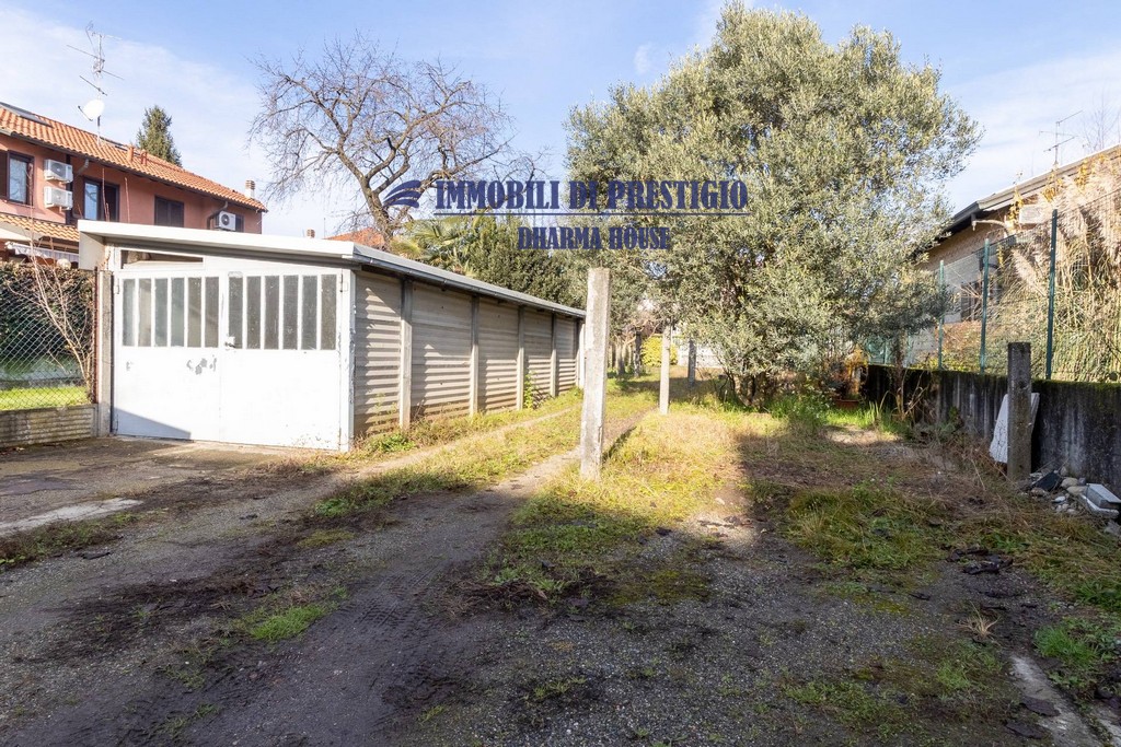 Il lotto ha un giardino fronte ingresso pedonale, sul lato interno abbiamo un ampio giardino/terreno con edificio per attrezzi e magazzino,