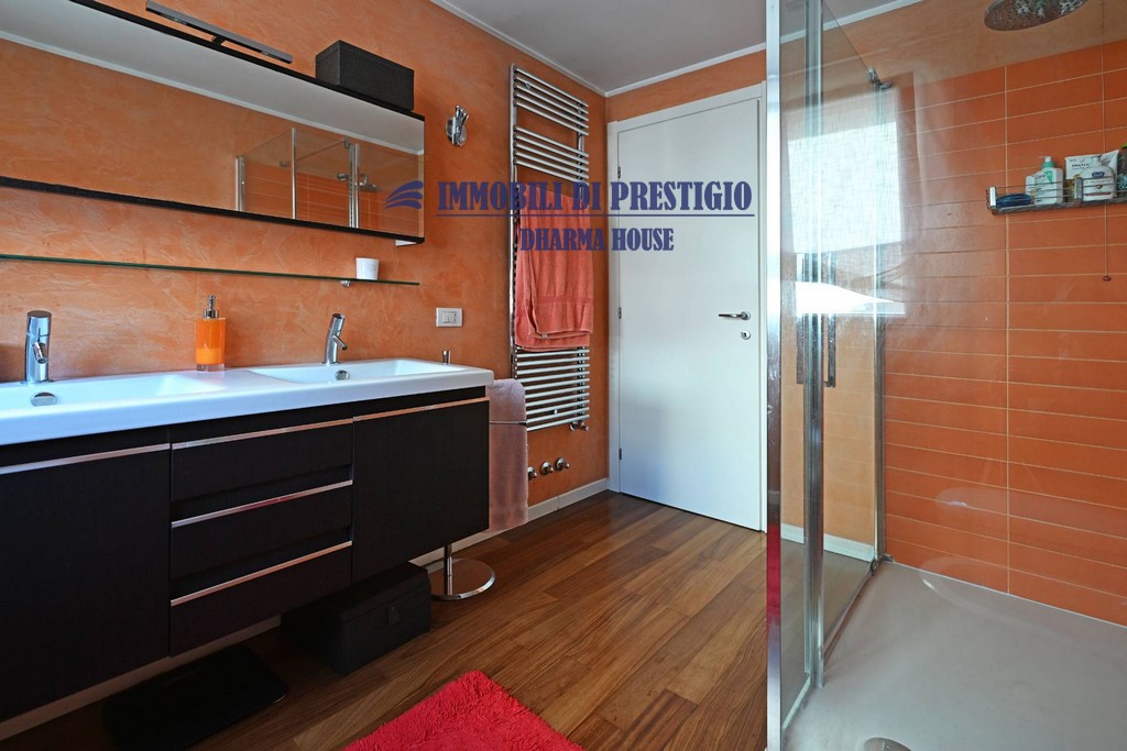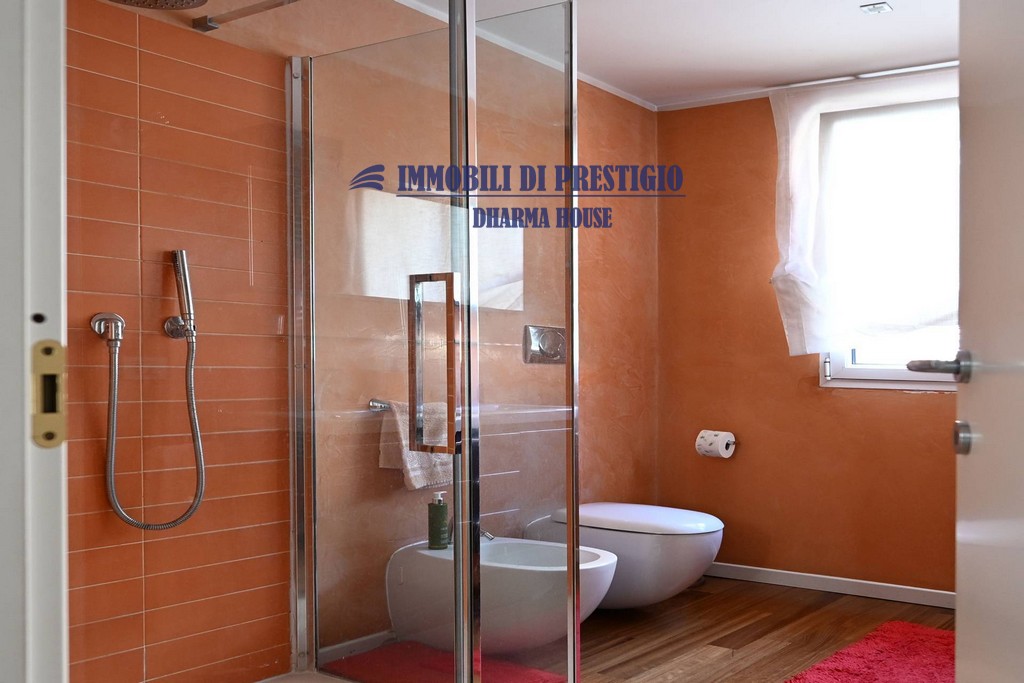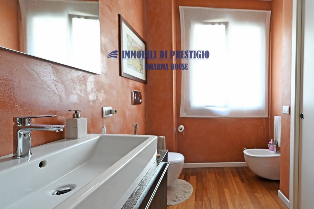 L’elegante parquet, presente anche nei bagni, contribuisce a creare un’atmosfera calda ed accogliente.