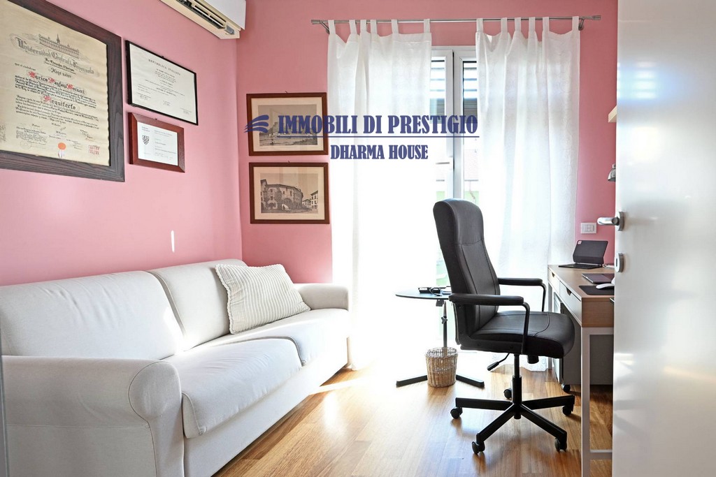 Al secondo piano sono situati la camera padronale con cabina armadio e bagno privato con finestra e uno studio.