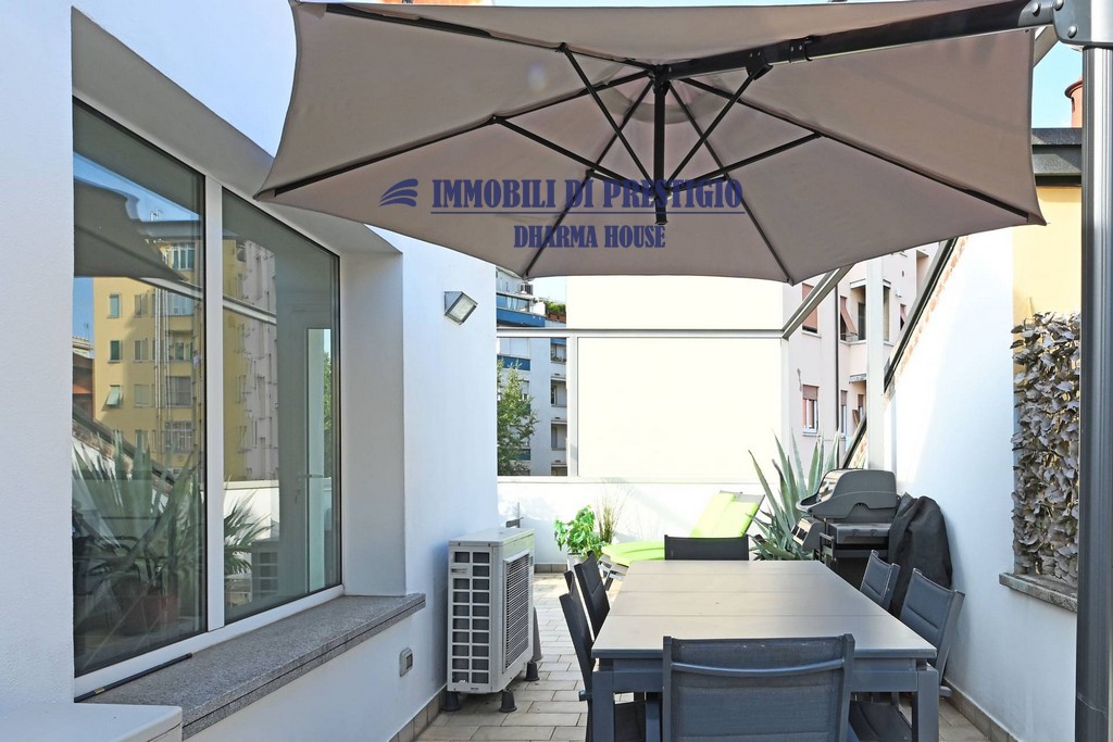 La scala conduce, infine, allo splendido terrazzo sovrastante, concepito per feste, grigliate ed aperitivi, ma che si presta a diventare anche un delizioso giardino pensile.