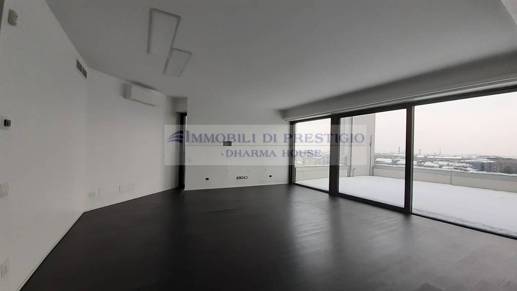 A pochi passi da City Life, nel nuovo complesso di Parco Vittoria, dotato di ampio giardino condominiale, proponiamo in vendita all’11° piano un prestigioso attico con terrazzi panoramici al piano e un vasto terrazzo di copertura al 12° piano.