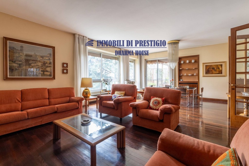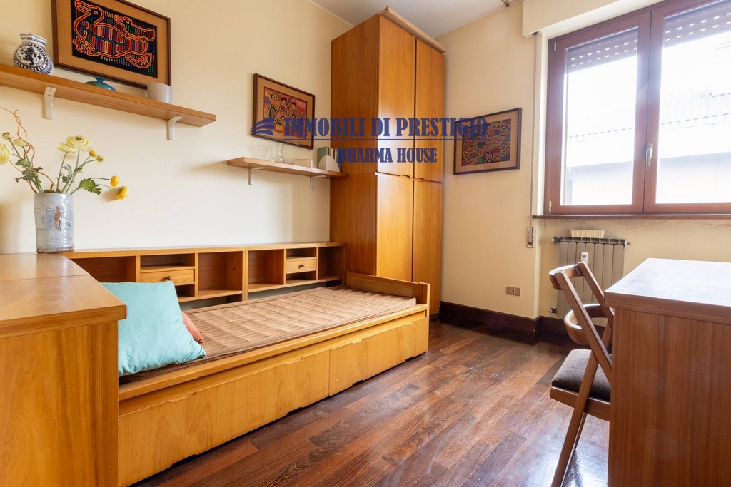 Dans un quartier résidentiel chic de San Siro, à quelques pas de l’école française et de la station de métro MM Segesta, je vous propose ce magnifique appartement situé au troisième et dernier étage d’un immeuble entouré de verdure et doté d’un parc privé.