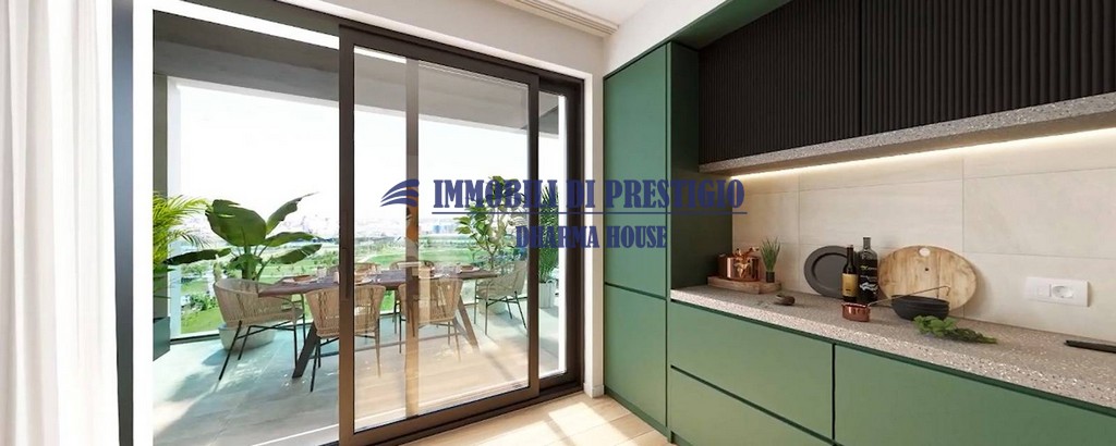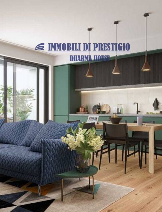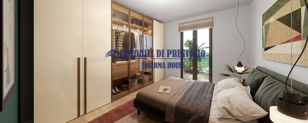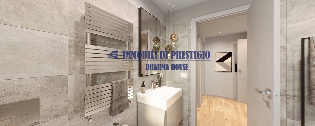 L’appartamento, è composto da tre locali oltre doppi servizi così distribuito: un luminoso soggiorno con cucina a vista che si apre su un terrazzo, ideale per pranzi all’aperto, momenti di relax o per godersi il sole durante le belle giornate. Un comodo disimpegno collega le diverse aree dell’appartamento, dotato di armadiatura su misura che offre ampio spazio per riporre abbigliamento, accessori e oggetti personali. Questo spazio è progettato anche con una predisposizione per lavatrice e asciugatrice, rendendo le operazioni di lavanderia pratiche e comode, senza dover sacrificare spazio prezioso in altre aree.