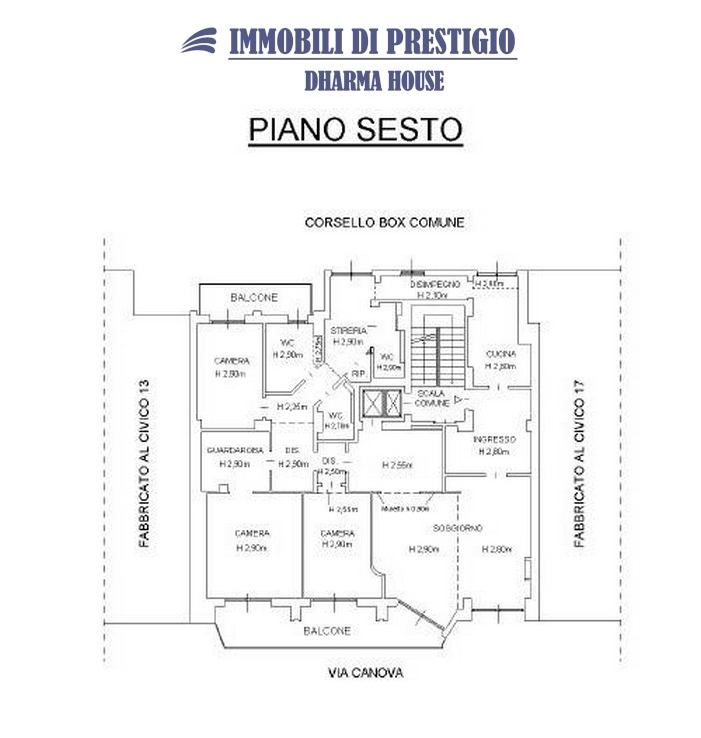 L’appartamento di 183m2 posto al sesto piano è situato in un contesto di solo 8 unità immobiliari, una per ogni piano, dispone di un ascensore con accesso diretto all’immobile ed uno di servizio.