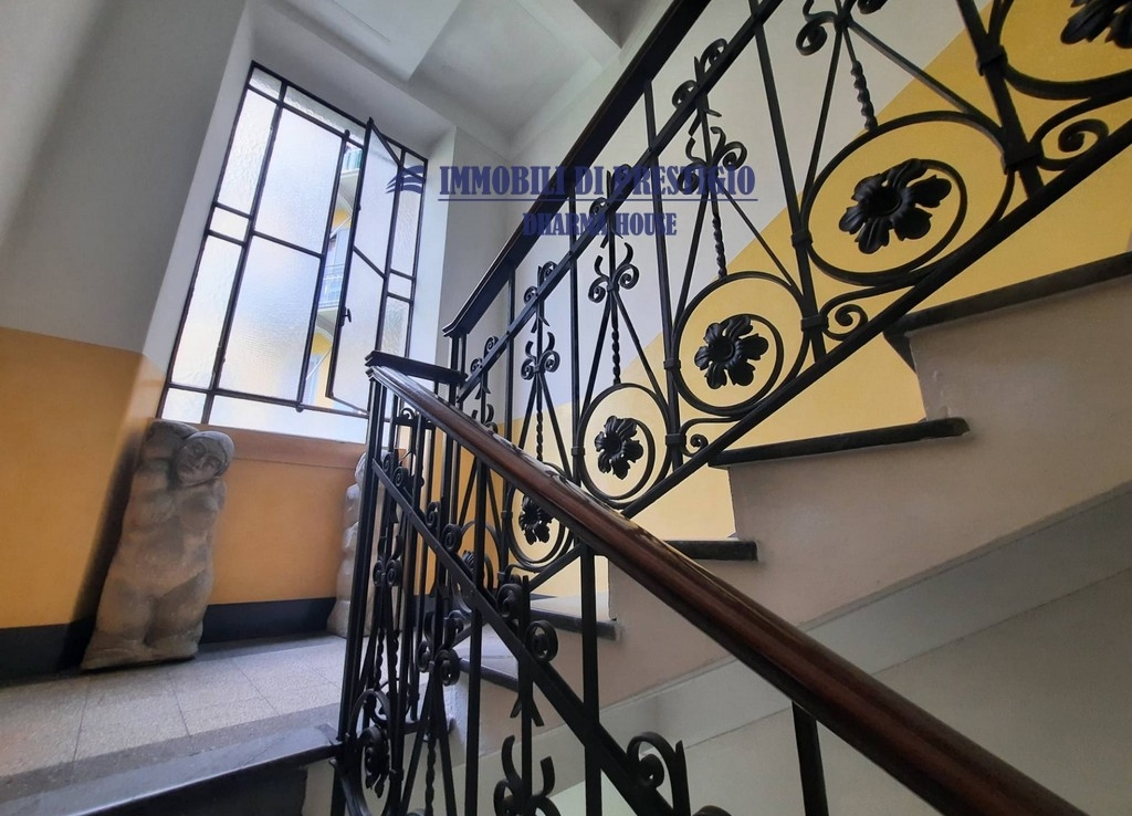 Il contesto condominiale conserva tutto il fascino dell’epoca: scale in ferro battuto, pavimenti originali e dettagli architettonici raffinati.
