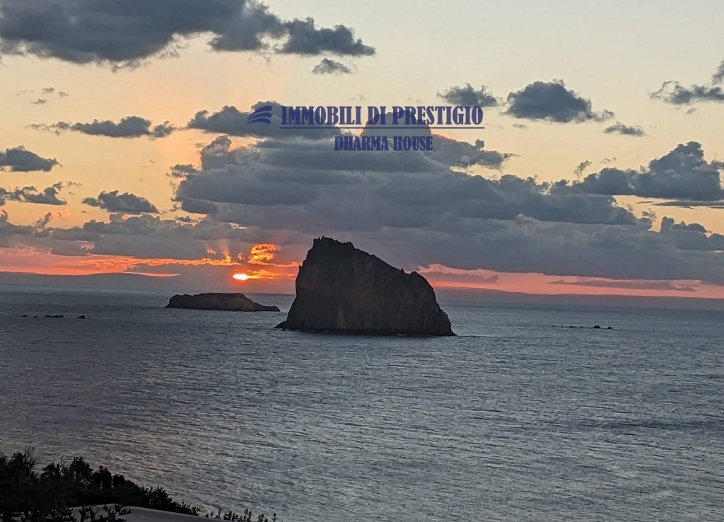 E’ splendida la vista da questa villa realizzata in tipico stile eoliano, con intonaco bianco, con le caratteristiche cornici sulla facciata principale e il panoramico terrazzo loggiato da cui ammirare il mare con l’Isola di Stromboli e i suggestivi scogli che, al tramonto, spiccano come sculture.